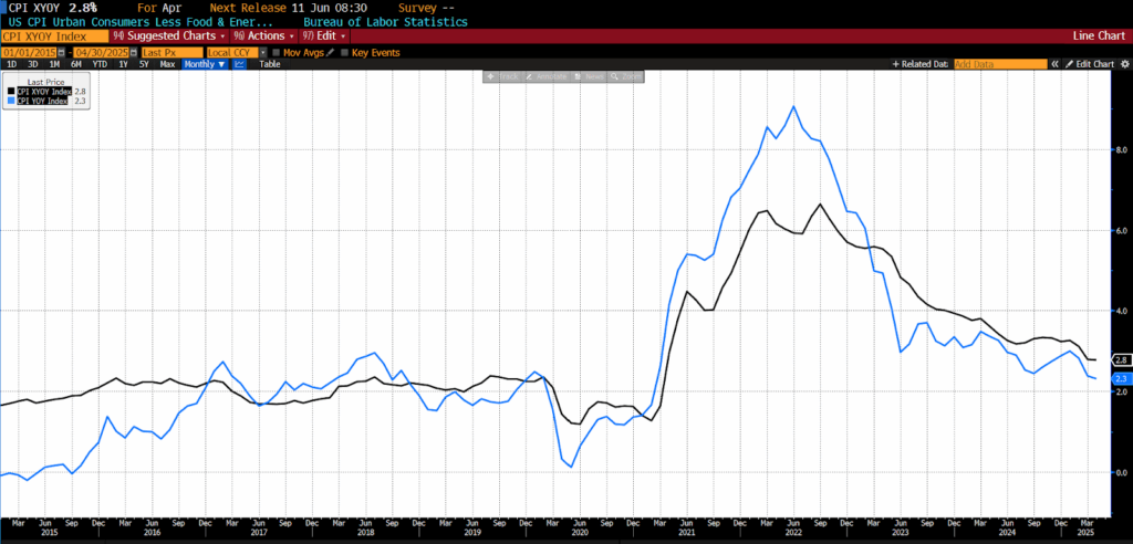 April 2025 US CPI headline & core year-over-year (2015 – present)
