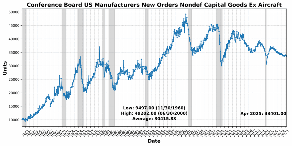 Further back in the term structure from consumer goods, US manufacturing and industrial output data reveal a murky picture of a sector straining under uneven policy signals and rising input costs. Factory production declined 0.4 percent in April and industrial production dipped another 0.2 percent in May, weighed down by weaker output in consumer goods, nondurables, and utilities. While auto and aerospace manufacturing provided isolated strength — likely a front-loaded response to tariff threats — broader industrial activity remains subdued, with capacity utilization falling to 77.4 percent. Production of business equipment eked out gains, but nondurable goods output declined despite an uptick in aggregate hours worked, suggesting productivity shortfalls. The three-month decline in consumer goods output reflects not just softening demand but lingering uncertainty that has stalled capital expenditure plans and dragged on factory sentiment indices. Surveys like the ISM remain in contraction territory, reinforcing anecdotal evidence that firms are delaying hiring and investment decisions until tariff paths and fiscal measures become clearer. The sector’s volatility and conflicting signals illustrate a fragile manufacturing base more reactive than resilient — one that could struggle to recover momentum without decisive and coherent trade and tax policy from Washington.