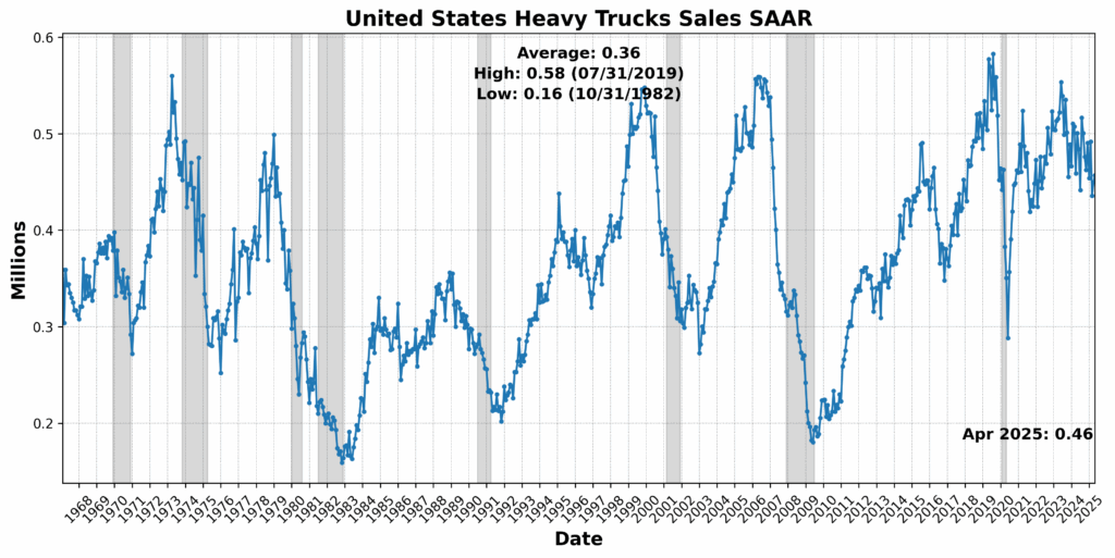 The strongest gains came from the Conference Board US Leading Index Manufacturers’ New Orders: Consumer Goods and Materials, up 1.7 percent, and US New Privately Owned Housing Units Started by Structure Total SAAR, which rose 1.6 percent — a sign that despite higher interest rates, housing construction remains resilient in some regions. United States Heavy Trucks Sales SAAR also rose 1.6 percent, potentially reflecting fleet investment or increased freight activity. Adjusted Retail and Food Services Sales Total seasonally adjusted (SA) posted a marginal gain of 0.1 percent, suggesting flat but stable consumer spending.