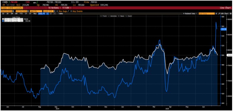 Copper futures on the Chicago Mercantile Exchange (COMEX) surged as much as 17 percent during yesterday’s session, the largest one-day gain in the history of the contract. Traders are now rushing to front-load shipments into the US ahead of the anticipated August 1 implementation date. Imposed under Section 232 of the Trade Expansion Act on national security grounds, the impost is expected to hit refined copper imports from major US trade partners, most notably Chile, Canada, and Mexico. The precise scope of the measure remains unclear, particularly whether it will cover scrap copper, semi-fabricated products, or exempt key allies.