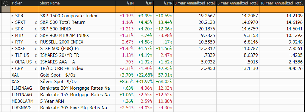 Back to the macroeconomic outlook: soft data show the economy’s split personality: services expanding while manufacturing contracts but stabilizes, consumer sentiment collapsing to near-record lows amid deteriorating personal finances and job anxiety with consumption remaining strong, and small-business optimism slipping on weaker earnings and softer sales. The loss of October and November’s core indicators, plus gaps going forward, mean that policymakers have no reliable read on inflation momentum or labor market cooling, forcing them to evaluate the economy through anecdotes and information patches rather than a full picture. In this environment, even modest surprises — whether in private-sector labor trackers, ISM reports, or high-frequency spending data — carry outsized weight, shaping market expectations and policy debates in ways that would never occur under normal statistical conditions. For now, the lone clear signal amid the noise is the price of gold, and its message is unmistakably cautious.